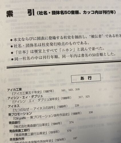 村橋勝子『社史の研究』索引索引の二つ目は「団体名索引」です。こちらは170ほどの団体名を並べました。ウィキペディアの記事に出てくる会社や団体名のほかに、典拠資料を調べに行った図書館名、知り合った方々の所属機関名、そして紹介した本の出版社名など…